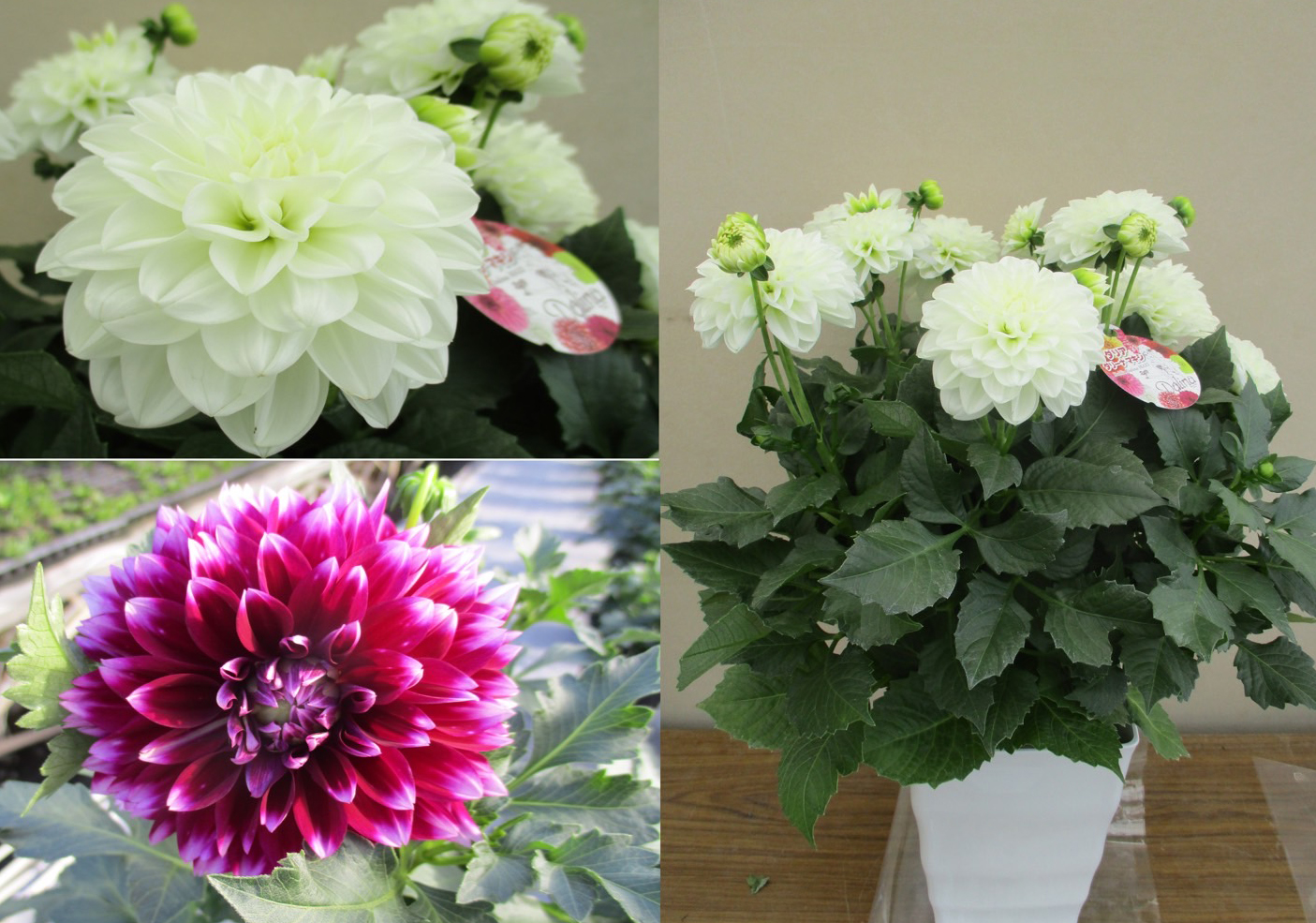 今回はヨーロッパの種苗会社で育種された「ダリーナ マキシ」という鉢物用の品種シリーズの中からいくつかを紹介します。このシリーズは丈夫で生育が旺盛、花弁数が多く、見栄えのする中輪から大輪の花を特徴としています。