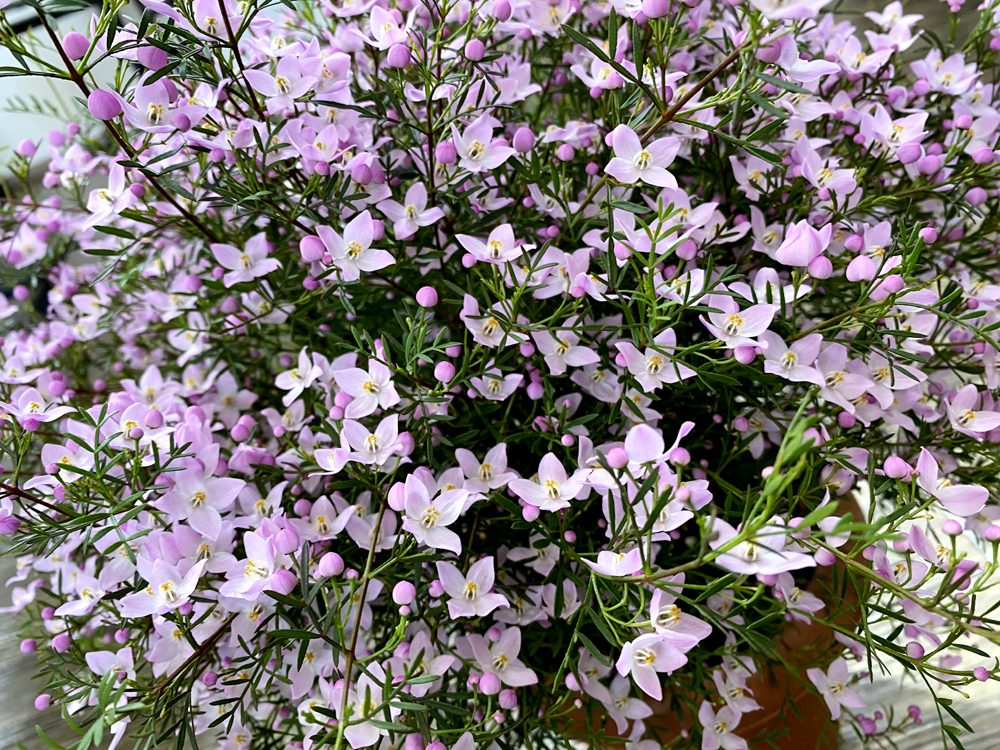 ボロニア・ピナータは耐寒温度が5度ほどで、霜に当たると枯れてしまうので冬は室内で管理しますが、日当たりが悪いと蕾が順調に咲いてこないので、窓辺などに置きます。暖房の風が当たらないように注意しましょう。