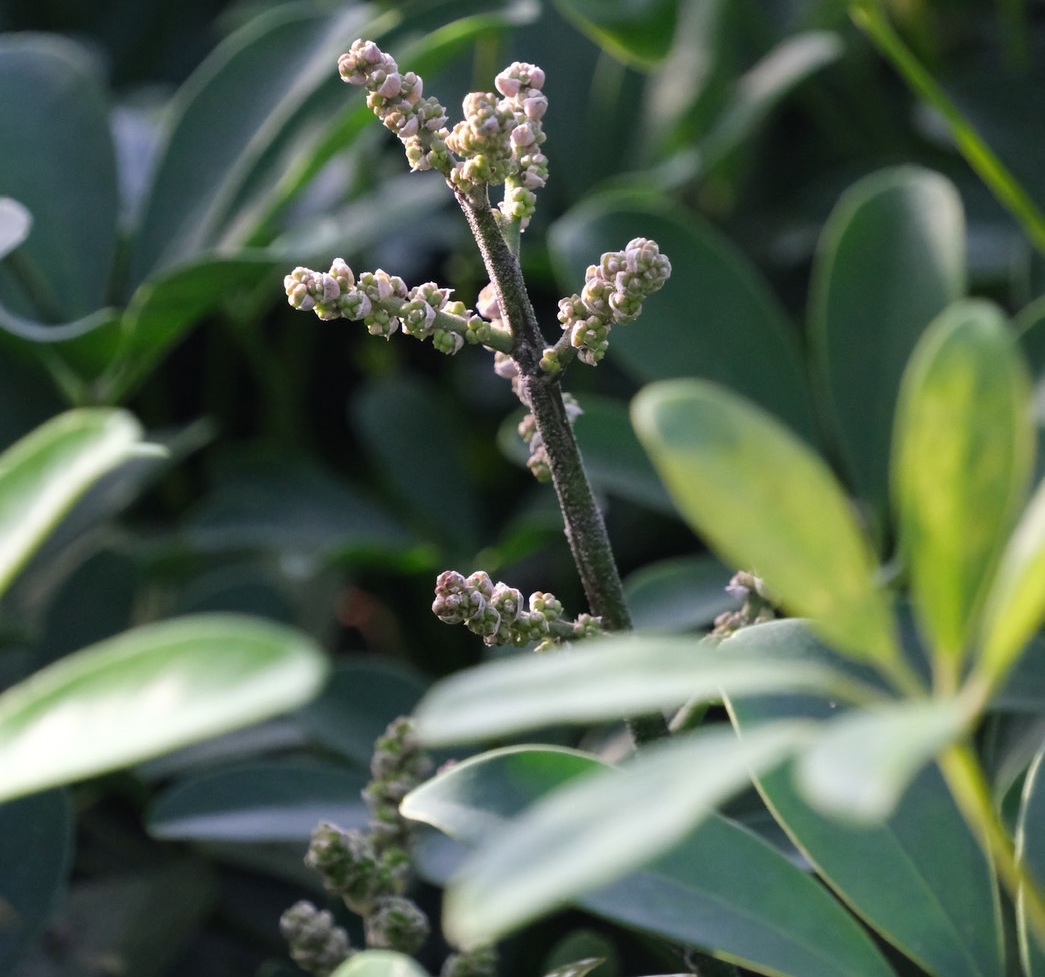 室内に飾る観葉植物としての利用が一般的ですが、成長が速い植物で、野外では環境が合えば10メートルくらいの高さにまで成長します。花が咲いたイメージはあまりないと思いますが、成熟した樹では5~7月頃にクリーム色の小さな花がたくさん集まった円錐状の花穂をつけます。