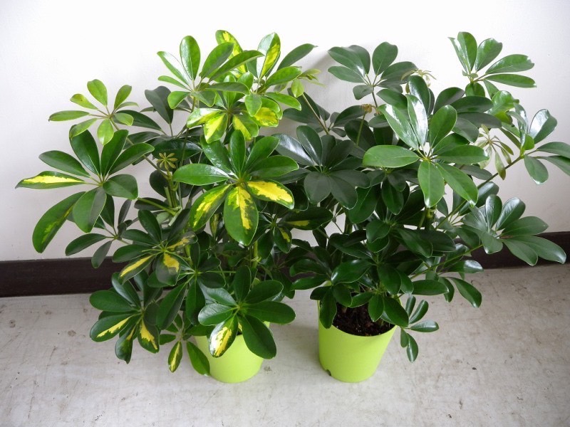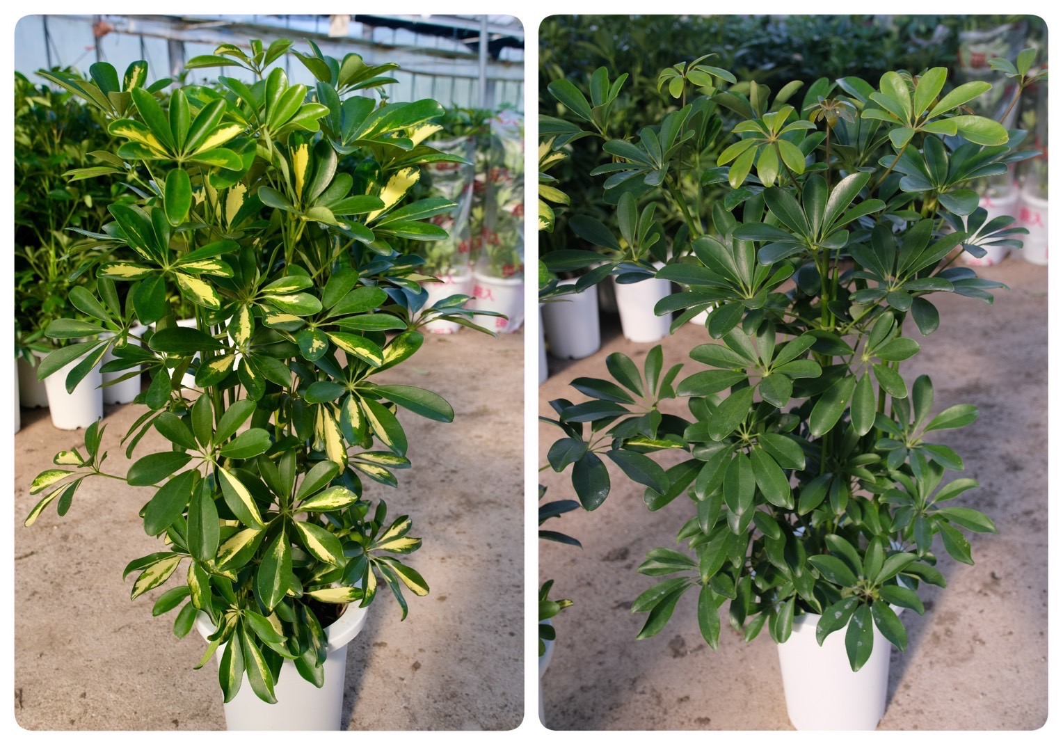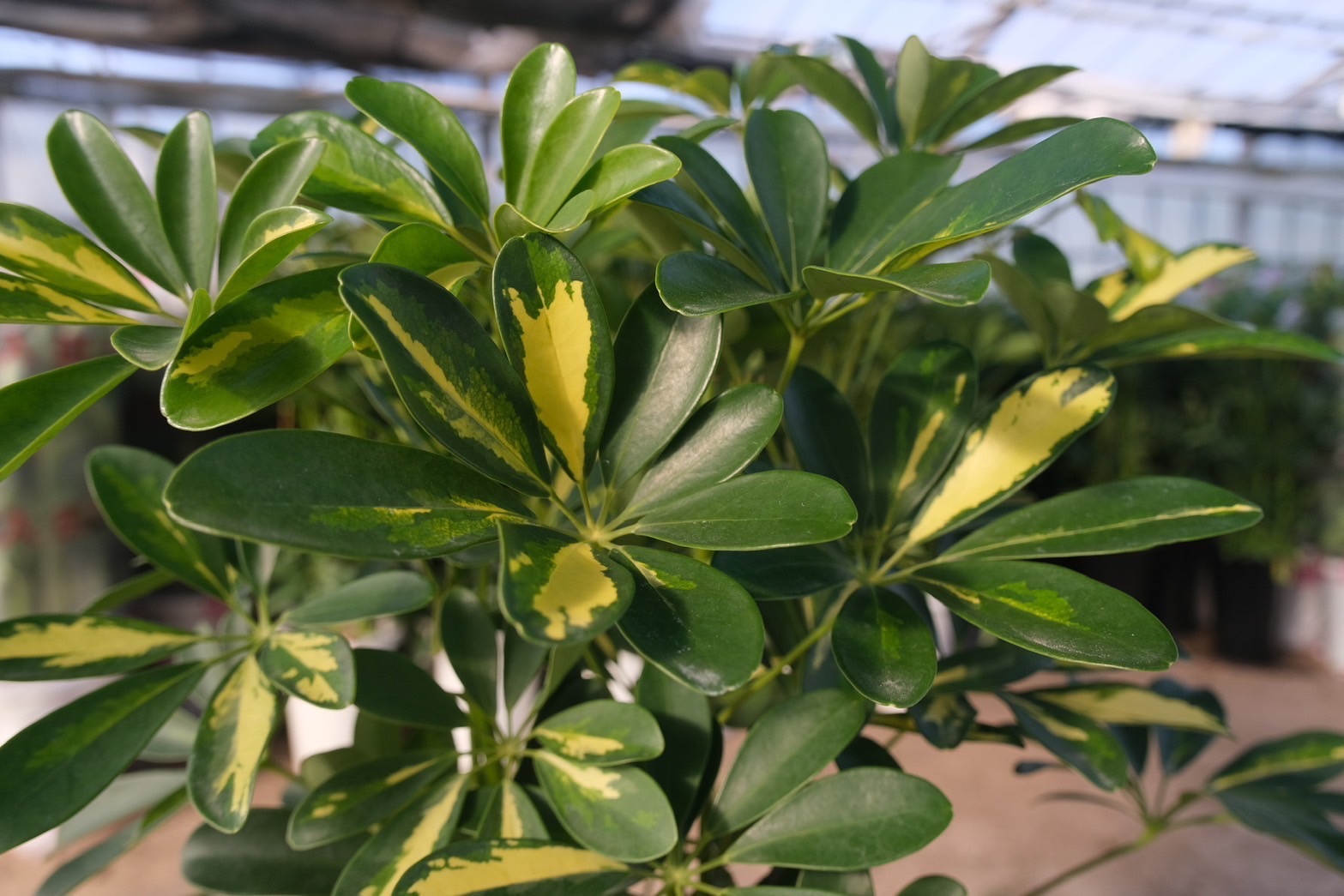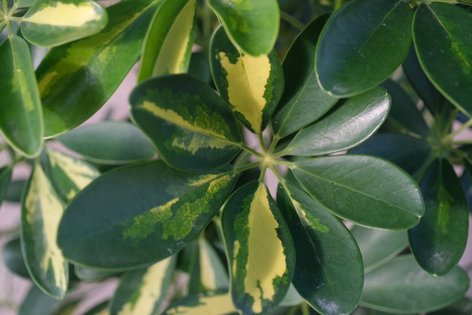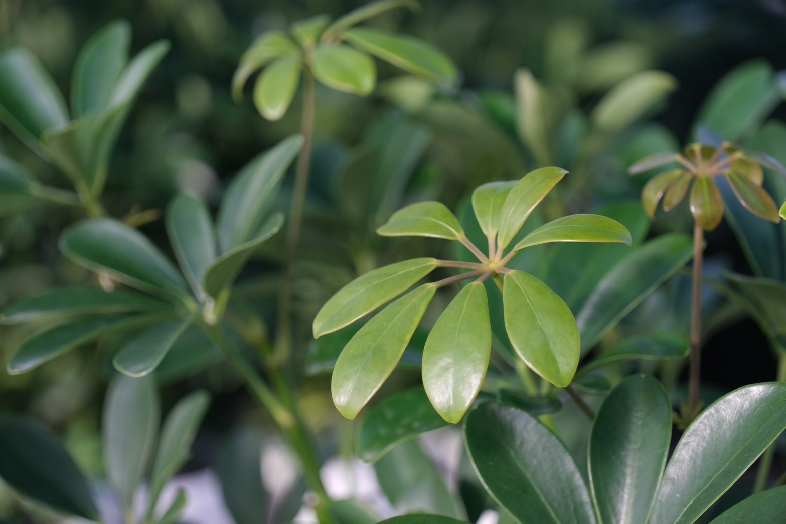 シェフレラ‘ホンコン’は正確にはシェフレラ・アルボリコラ‘ホンコン’といいます。つまり、シェフレラ属、アルボリコラ種の「ホンコン」という品種です。ホンコンはアルボリコラの中から、葉が肉厚で丸みがあり、葉柄が短くコンパクトな仕立てに向くように選抜された園芸品種です。