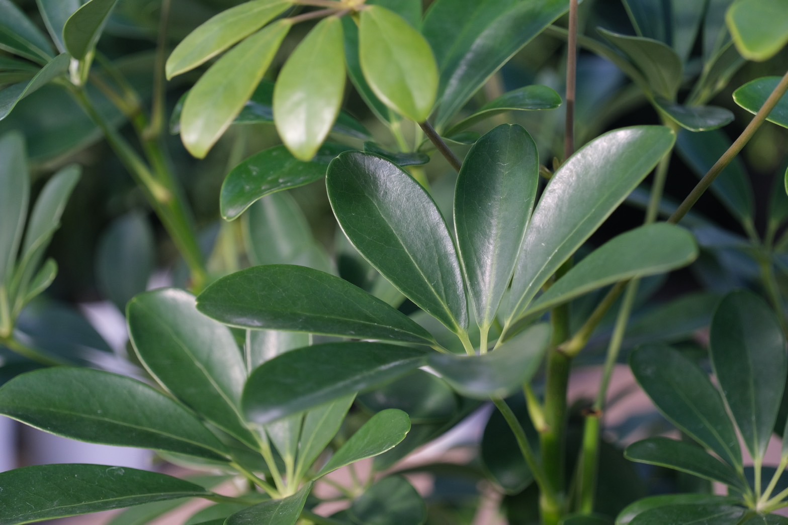 台湾、中国南部が原産で、ユニークな形の葉と真っ直ぐな茎が特徴。オフィスや店舗の装飾などで我々にとって馴染みの深い観葉植物です。暖かい地域では生け垣などとしても使われます。丈夫で育てやすいという点でもシェフレラは観葉植物の中でトップクラス。環境への順応力が高く、日当たりが悪くても、少々寒くても平気です。