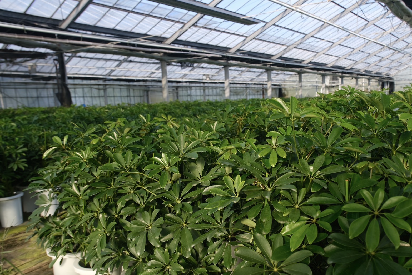 田原市では約50戸の生産者が多種多様な観葉植物を生産しており、そのうちの数戸がシェフレラを栽培しています。シェフレラは年間を通じて出荷されています。観葉植物の多くは春から夏が出荷のピークとなりますが、寒さに強いシェフレラは夏よりも1月から4月にかけて多く出荷されています。